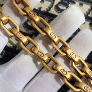 – Detachable chain in aged gold-tone metal