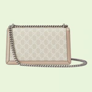 A heritage material from the archive, has been reimagined in Luxury Love Parade in different color combinations and combined with contemporary as well as styles. The is presented in a beige and white variation of the signature material with a tonal trim. Originally a play on a ’30s design, the canvas speaks to the historical narrative that runs throughout the collection.