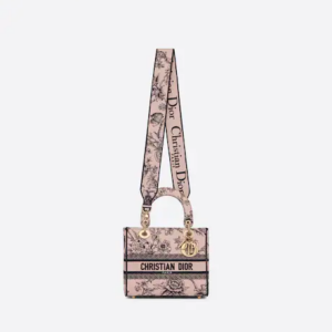 The Lady D-Lite bag combines classic elegance with House modernity. Fully embroidered with the powder pink Dior Jardin Botanique motif, it features a romantic floral pattern inspired by Granville gardens so dear to Mr. Dior. The front features a ‘CHRISTIAN DIOR PARIS’ signature while the ‘D.I.O.R.’ charms in pale gold-finish metal embellish and illuminate the silhouette. Equipped with a wide, reversible and removable embroidered shoulder strap, the medium Lady D-Lite bag can be carried by hand or worn crossbody.