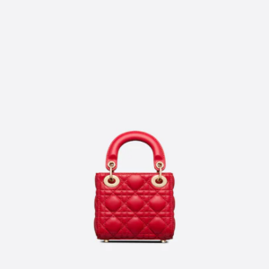 The Lady Dior bag embodies the House’s vision of elegance and beauty. Crafted in scarlet red lambskin with signature Cannage topstitching, its iconic silhouette is embellished with a ‘D.I.O.R.’ charm. The micro Lady Dior bag can accommodate all the small daily essentials and, thanks to its handles and adjustable and removable strap, can be carried by hand, worn over the shoulder or crossbody.