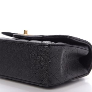 This is an authentic Mini Top Handle Rectangular Flap in Black. This chic mini crossbody is crafted of iridescent leather in black. The bag features a leather top handle. an aged gold chain link leather threaded shoulder strap and a facing aged gold turn lock. This opens the flap to a black leather interior with zipper and patch pockets.