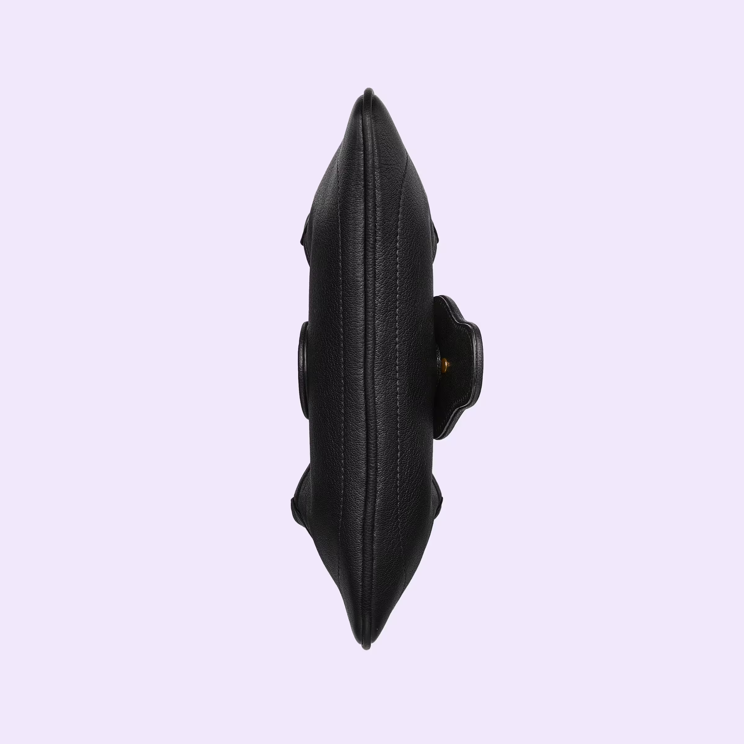 The Cruise 2023 Luxury Cosmogonie collection was presented against the backdrop of the historic Castel del Monte in Italy. The show brought together aesthetics from distant eras and geographies, and linked elements from the past with the present. This new crescent-shaped shoulder bag is part of a collection shown on the runway and was inspired by the House’s archives, it is crafted in soft leather and features the Double G emblem—a code originally introduced in the 1970s.