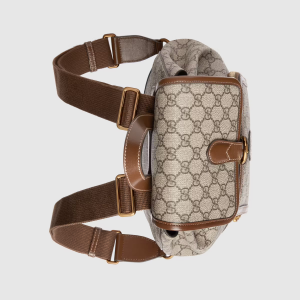 Materials, colors and House codes come together to infuse styles with a feel. Here, this backpack is crafted from beige and ebony canvas with a brown leather trim. The style is completed by one of Luxury ‘s most historic codes—the Interlocking G.