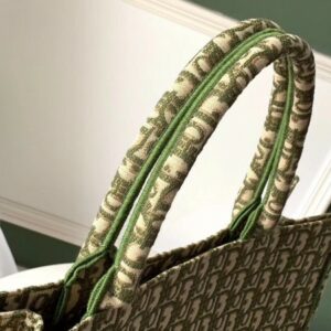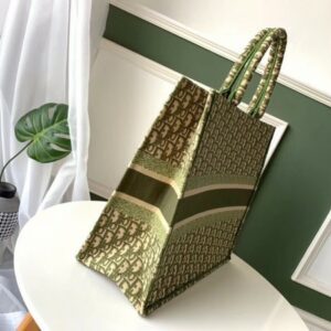 Dior Book Tote Bag In Green Oblique Canvas.