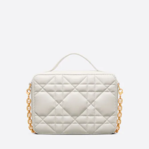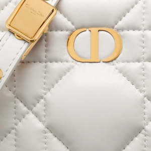 Maria Grazia Chiuri’s Dior Caro box bag is a modern creation. Crafted in latte calfskin, it stands out with a unique Macrocannage quilted effect and a spacious compartment, including three card slots, to accommodate all the daily essentials. The removable chain strap features a leather insert for comfortable and adjustable wear, either over the shoulder or crossbody, while the handle allows it to be carried by hand.