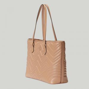With its recognizable matelassé fabric and Double G hardware, the hand has become synonymous with the House. Continuously reinvented through the seasons, new shapes are introduced within this signature line, matching Luxury ‘s contemporary vision. This large tote bag reveals a base, further enhancing the tonal logo hardware.