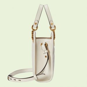 “Luxury ‘s March of Love” new fashion series interprets many of the brand’s recognizable elements into a mini version of the design, reproducing the trend of the 90s. Crafted in white leather, this hand bag combines a soft yet structured shape with a noble and small Double G hardware. Double handles and a detachable leather shoulder strap add more styling options to the entire bag.