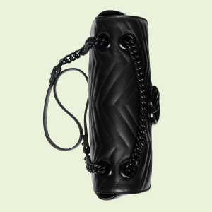 The small hand shoulder bag has a softly structured shape and an oversized flap closure with Double G hardware. The sliding strap can be worn multiple ways, changing between a shoulder and a top handle bag. Made in matelassé leather, the accessory is introduced for Luxury Love Parade with monochrome hardware.