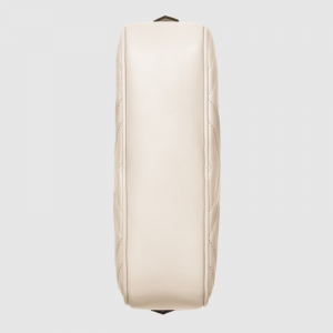 The small hand shoulder bag has a softly structured shape and a zip top closure with the Double G hardware. The shoulder strap has a leather shoulder detail. Made in matelassé leather with a design and on the back.