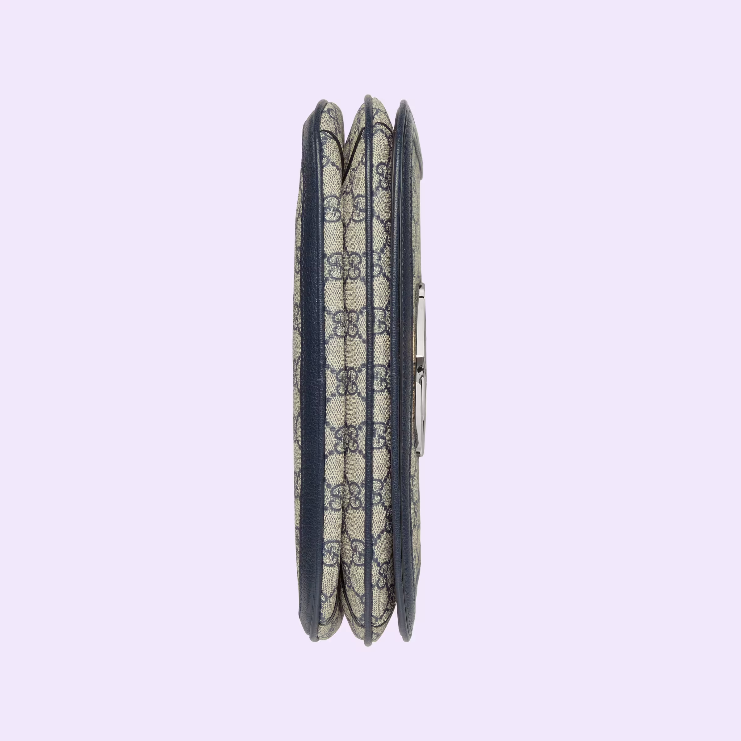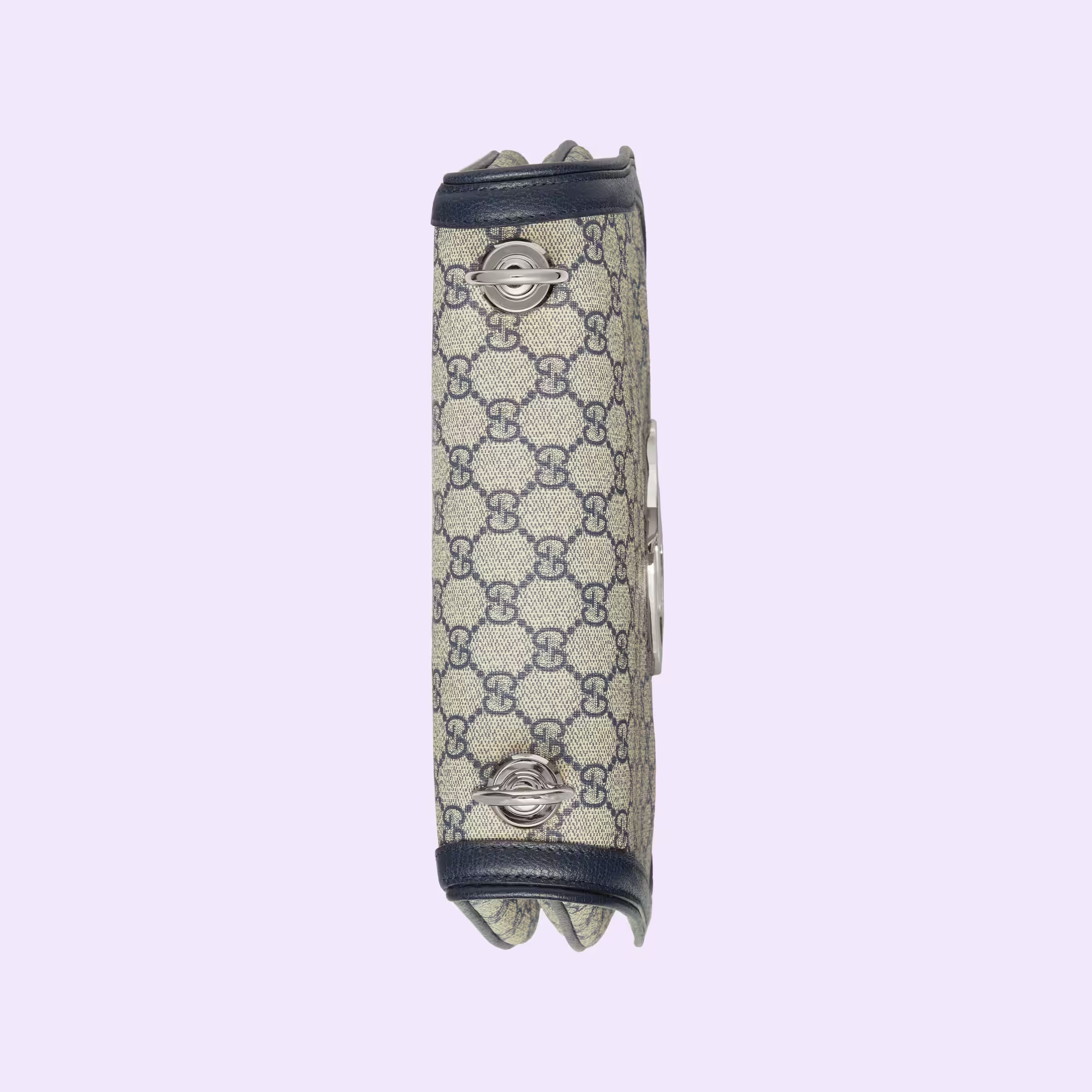 Coming from the House’s archives, a geometrically shaped version of the Interlocking G logo comes to the fore. The gold-toned hardware adds a defined feel to the style, enriching the design with a timeless feel—mirroring the Hollywood glamour that shaped the fashion show. The top handle bag is completed by two interchangeable straps, one with stud details.