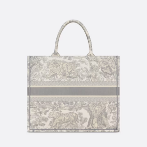 Introduced by Maria Grazia Chiuri, Creative Director of Christian Dior, the Dior Book Tote has become a staple of the Dior aesthetic. Designed to hold all the daily essentials, the style is fully embroidered with a gray Toile de Jouy motif. Adorned with the ‘CHRISTIAN DIOR PARIS’ signature on the front, the large tote exemplifies the House’s signature savoir-faire and may be carried by hand or worn over the shoulder.