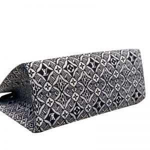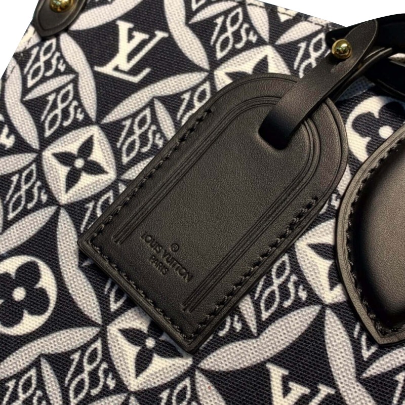 Denim and Leather play stylishly together on this casual-chic GM tote bag, creating an interesting illusion of texture. Subtle motifs add refinement, while the leather trim brings a bold touch. A roomy, fashionable piece, perfect for everyday wear.