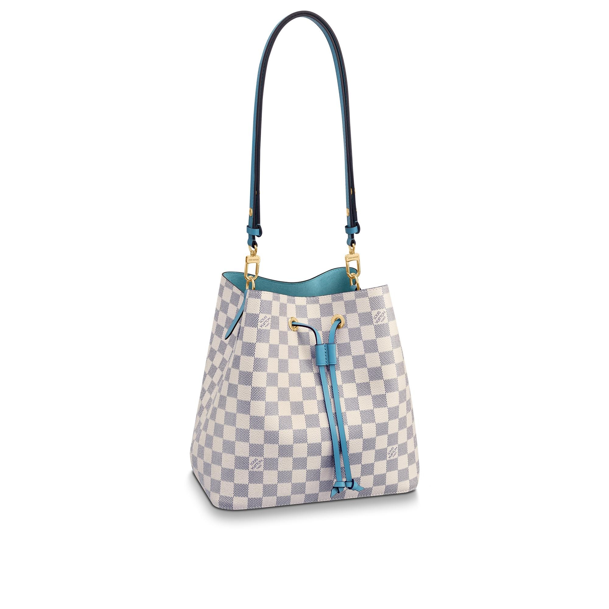 This limited edition of the bucket Bag in Damier Azur canvas captures the very spirit of summer with its pastel leather trim and colorful coordinated lining. It will bring a sunny, seasonal touch to any beach-to-city outfit, either slung over the shoulder or worn cross-body, thanks to the removable, adjustable strap.
