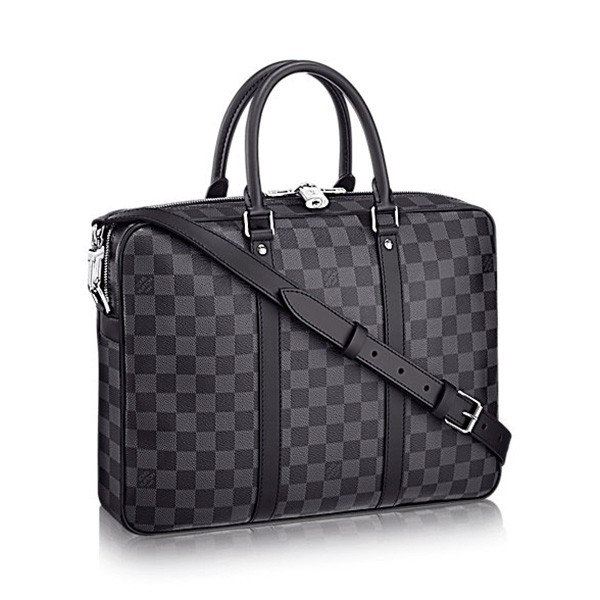 37.0 x 30.0 x 7.0 cm (Length x heightx width ) •Damier Graphite canvas •Leather removable and adjustable shoulder strap •Shoulder pad •1 internal iPad pocket•1 internal double flat pocket
