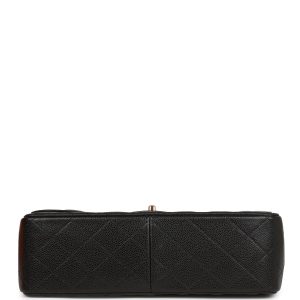 This Double Flap bag is in black leather with tone hardware and features a front flap with signature turnlock closure. half moon back pocket. and adjustable interwoven tone link and?black leather shoulder strap.
