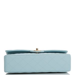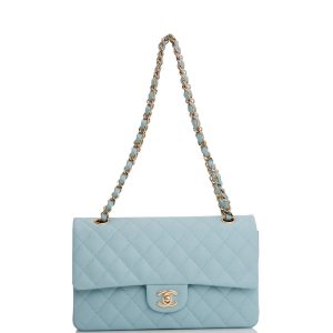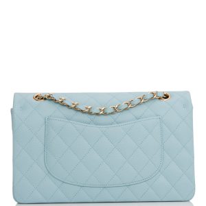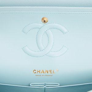 Medium Classic Double Flap Bag Blue Quilted Caviar Light Gold Hardware.