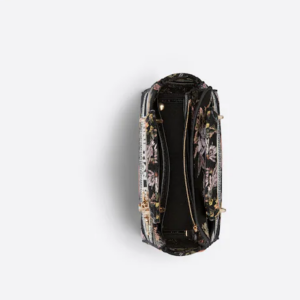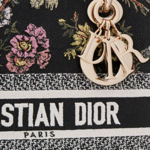 The Lady D-Lite bag combines classic elegance with House modernity. Fully embroidered with the black multicolor Dior Jardin Botanique motif, it features a romantic floral pattern inspired by the Granville gardens so dear to Mr. Dior. The front features a ‘CHRISTIAN DIOR PARIS’ signature while the ‘D.I.O.R.’ charms in pale gold-finish metal embellish and illuminate the silhouette. Equipped with a wide, reversible and removable embroidered shoulder strap, the medium Lady D-Lite bag can be carried by hand or worn crossbody.