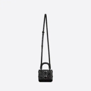 The Lady Dior bag embodies the House’s vision of elegance and beauty. Crafted in black Cannage calfskin with a Diamond motif, its iconic silhouette is embellished with tonal metal ‘D.I.O.R.’ charms. The micro Lady Dior bag can accommodate all the small essentials. Thanks to top handles and an adjustable and removable shoulder strap, the versatile style can be carried by hand, worn over the shoulder or crossbody.