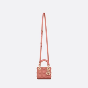 The Lady Dior bag embodies the House’s vision of elegance and beauty. Crafted in Ethereal pink lambskin with signature Cannage topstitching, the iconic silhouette is embellished with a D.I.O.R. charm. The micro Lady Dior bag can accommodate all the small daily essentials and, thanks to its handles and adjustable and removable strap, can be carried by hand, worn over the shoulder or crossbody.