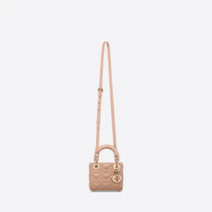 The Lady Dior bag embodies the House’s vision of elegance and beauty. Crafted in pink lambskin with a Heart motif and signature Cannage topstitching, its iconic silhouette is embellished with a ‘D.I.O.R.’ charm. The micro Lady Dior bag can accommodate all the daily essentials and features an adjustable and removable shoulder strap, allowing it to be carried by hand, worn over the shoulder or crossbody.
