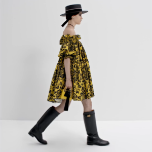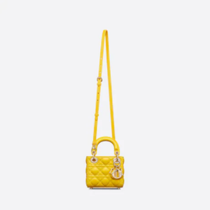 The Lady Dior bag embodies the House’s vision of elegance and beauty. Crafted in yellow lambskin with signature Cannage topstitching, its iconic silhouette is embellished with a ‘D.I.O.R.’ charm. The micro Lady Dior bag can accommodate all the daily essentials and features an adjustable and removable shoulder strap, allowing it to be carried by hand, worn over the shoulder or crossbody.