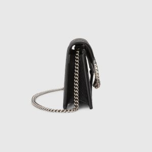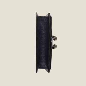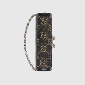 Reminiscent of an archival symbol, the textured tiger head spur is the Dionysus’ defining feature. The feline appears throughout the universe, expressing the House’s fascination with the wild beauty of the natural world. Here, the silver-toned hardware is paired with a black and ivory denim jacquard.