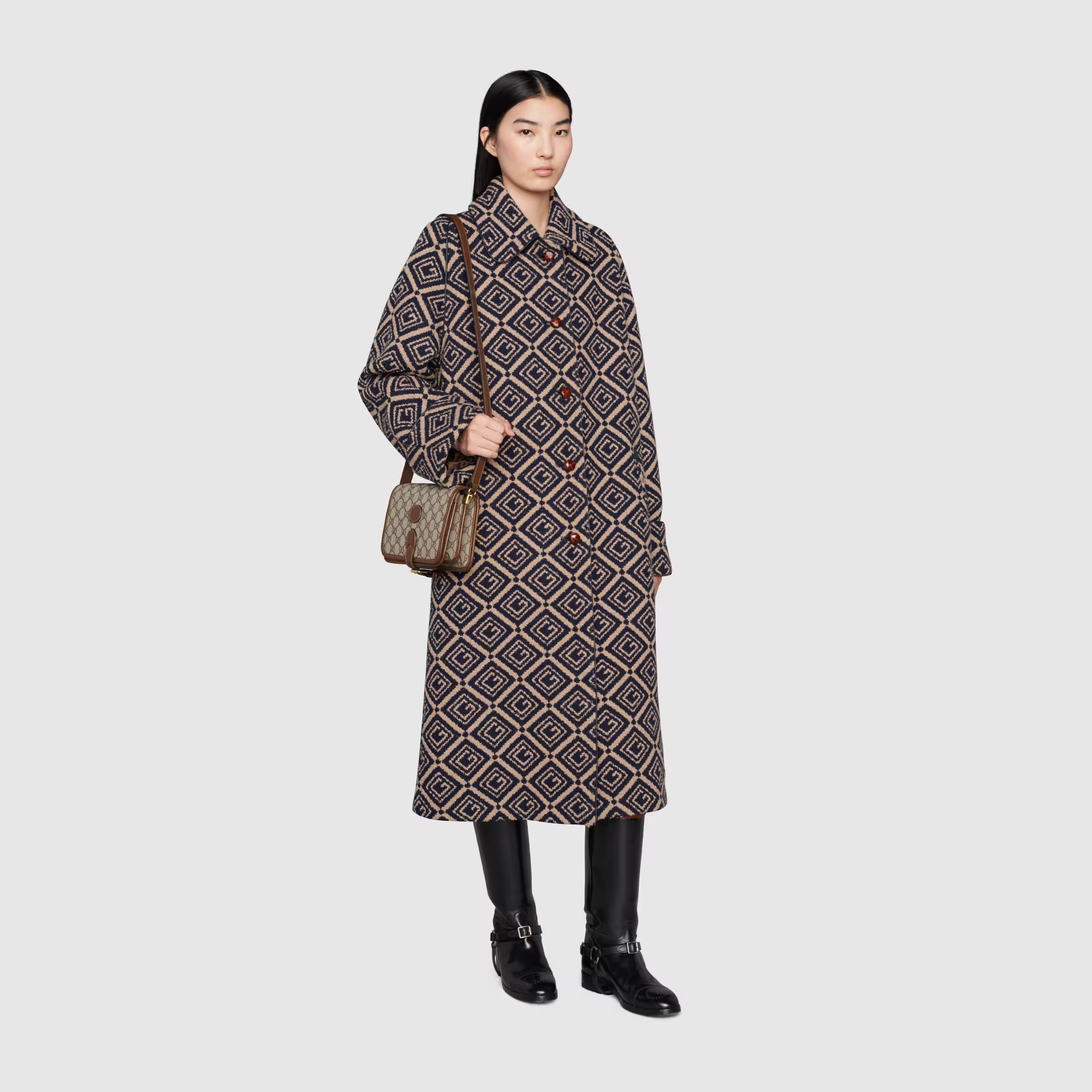 The Interlocking G has remained one of the most symbolic codes of the House since its introduction. The distinguishing emblem appears as a leather detail atop this shoulder bag. Completing the design’s logo feel, the style is crafted from Tote canvas.