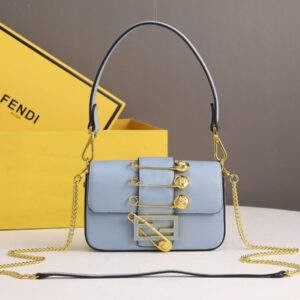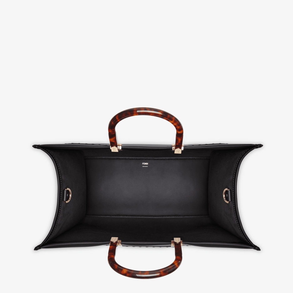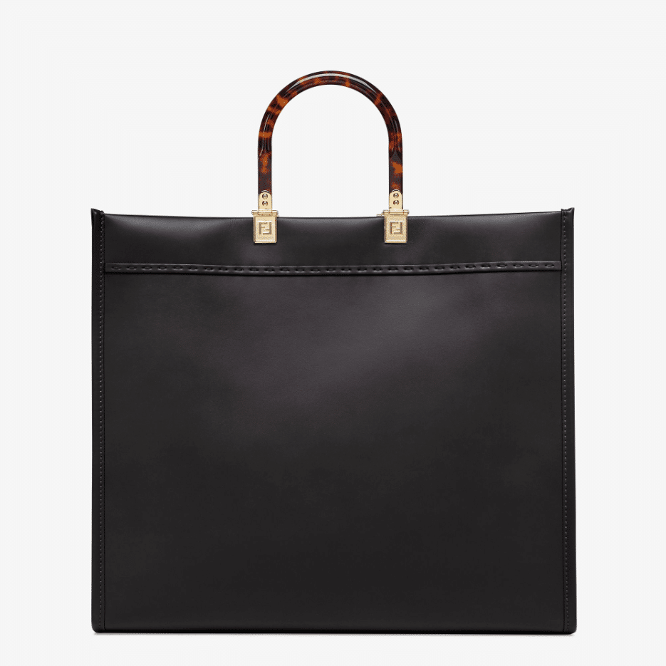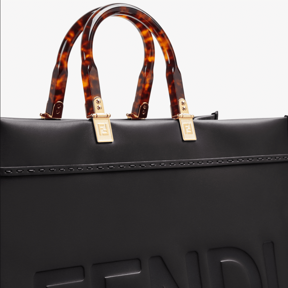 Sunshine Shopper bag made of grey leather with hot-stamped “FENDI ROMA” and stiff tortoiseshell plexiglass handles.