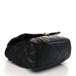 This is an authentic Maxi 19 Flap in Black. This bold shoulder bag is composed of black soft leather. It features an aged gold. and ruthenium black leather threaded shoulder strap. an aged handle and a facing leather threaded turn-lock for the facing flap. This opens to a red fabric interior with a zippered pocket.
